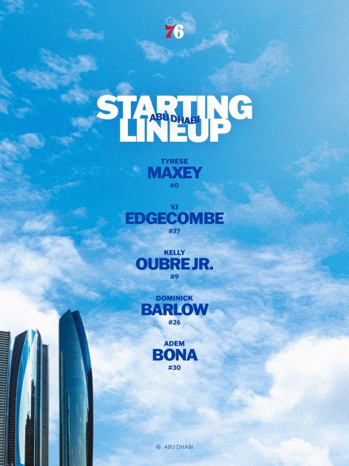 本场比赛,76人的先发阵容为(恩比德与保罗-乔治未被激活):
