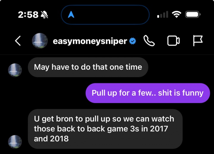 杜兰特回复:“你让勒布朗来,所以我们就能看看那些2017年、2018年(总决赛)的制胜三分了。”