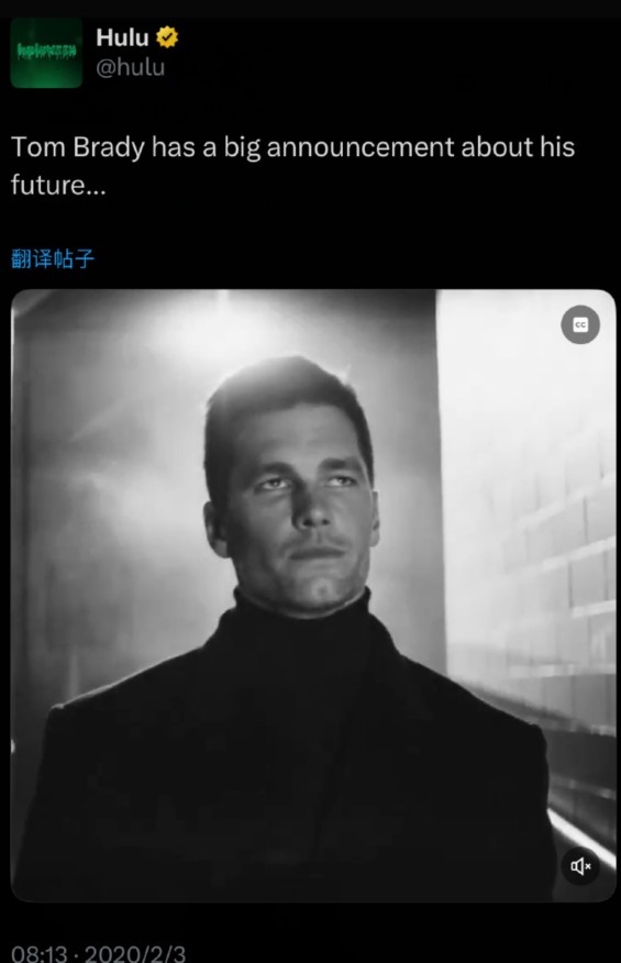 据悉,这并非体育界第一次用“联想退役”进行商业营销,在2020年第54届超级碗期间,Hulu(美国主流流媒体服务平台)播出了一则由NFL传奇球星汤姆-布雷迪主演的广告,标题为“汤姆-布雷迪对他的未来有一个重要事情宣布(Tom Brady has a big announcement about his future)”。