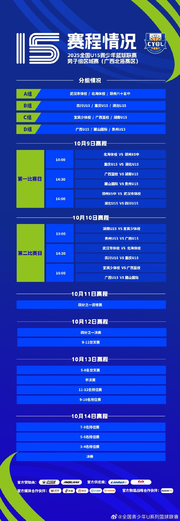 🏀2025年全国U15青少年篮球联赛男子组区域赛赛程公布!青春赛场,热力来袭🔥👇详见赛程海报。...