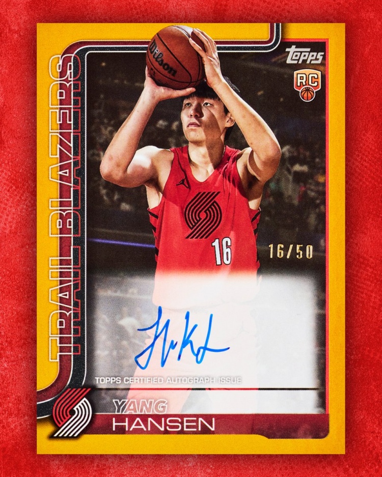 识货的该入手了!球星卡官方Topps晒出中国球员杨瀚森亲签卡