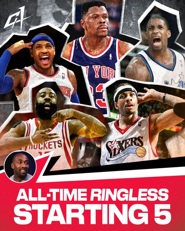 大将军评选的无冠历史首发五人组:艾弗森+哈登+麦迪+甜瓜+尤因