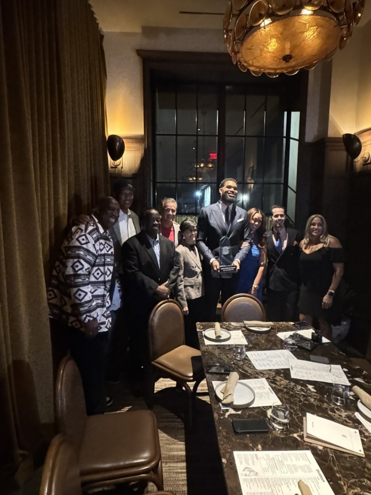 唐斯大学时的主教练、名帅卡利帕里也晒出了与唐斯亲友共进晚餐的照片(左四为卡利帕里),祝贺唐斯。他写到:“为唐斯和他的家人感到高兴,他入选了学校的名人堂!Ellen和Brad出席了典礼,我则和Kenny一起来参加庆祝。为你感到骄傲唐斯,很高兴能在这里支持并与你一同庆祝!