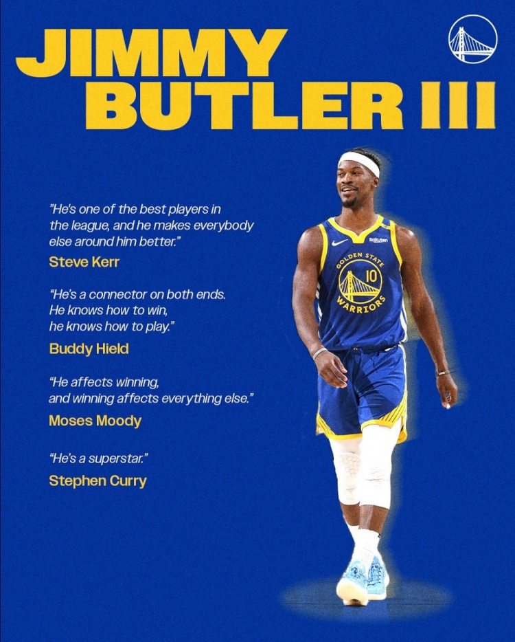 9月15日讯 今天是勇士球星吉米-巴特勒的36岁生日,球队官方社媒发动态祝其生日快乐,并晒出了教练和队友对他的高度评价。