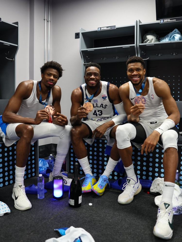 赛后,字母哥在社媒晒出了一张三兄弟(字母、字母哥哥、字母弟弟)戴着奖牌的合照。保罗-加索尔评论道:“为国争光,恭喜你的家人,兄弟!”