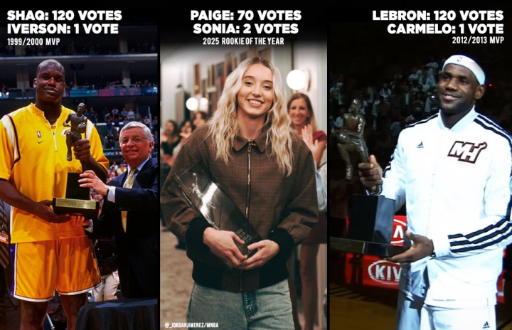 2025年WNBA最佳新秀,佩奇拿到72张选票中的70张选票,另外2张选票由西特龙获得