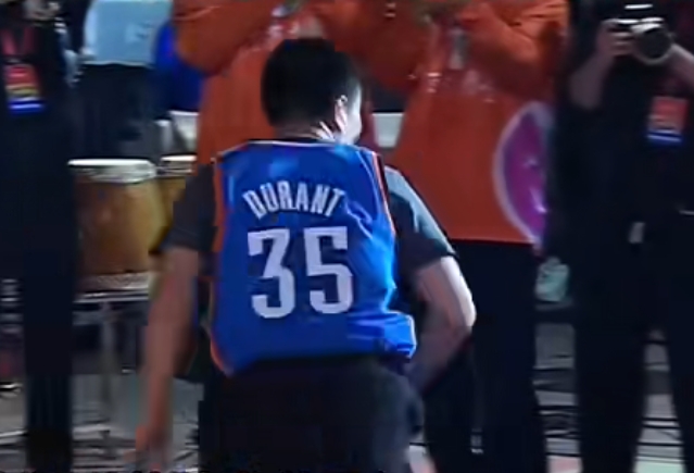 严父型球迷!徐静雨场上怒换杜兰特雷霆球衣 追梦一旁鼓掌大笑