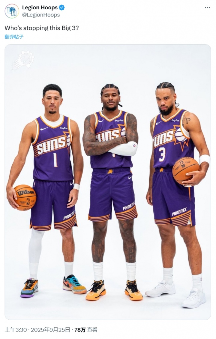 美媒晒布克+格林+狄龙定妆照:谁能阻挡太阳的新三巨头?