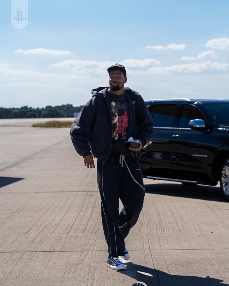 客战鹈鹕!火箭晒登机照:KD穿羽绒服气质逼人 电风扇随队出征