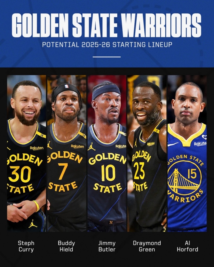老年组!勇士新季潜在首发:库里、希尔德、巴特勒、追梦、霍福德