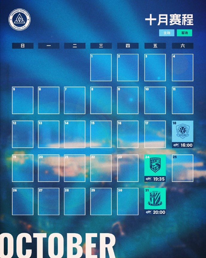 📅深圳新鹏城十月赛程月历