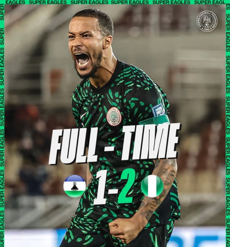 世预赛尼日利亚客场2-1莱索托,小组第三距榜首贝宁3分
