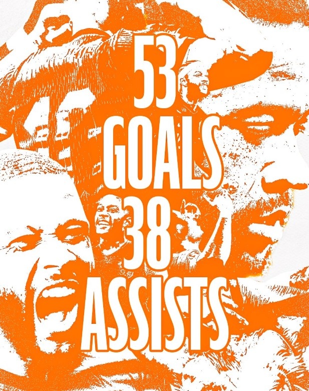 根据荷兰国家队的数据统计,德佩如今已为橙衣军团打进53球并送出38次助攻,两项数据均位居国家队历史榜首。