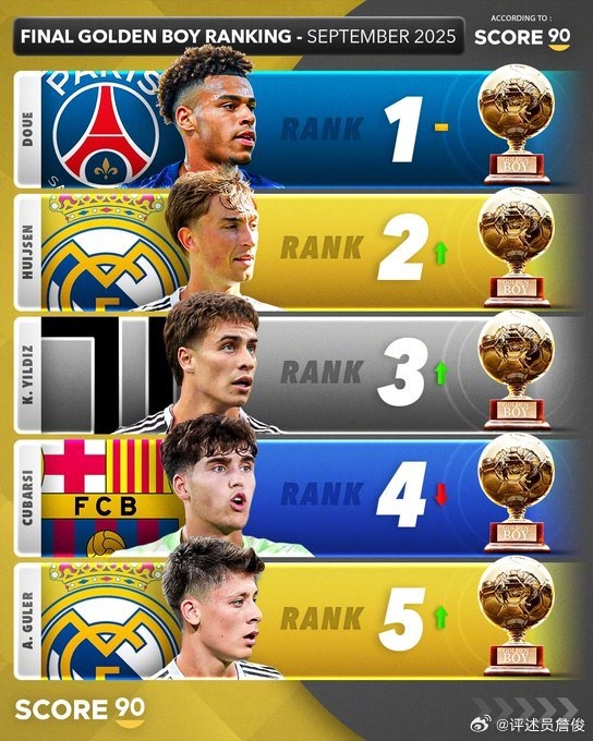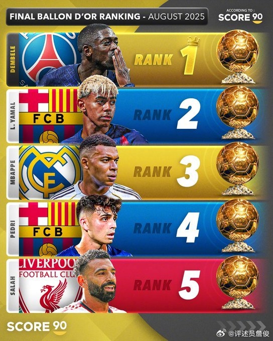 詹俊:2025金球奖的颁奖仪式下周一将在巴黎进行,国外媒体对金球奖和金童奖的预测............大巴黎将是大赢家。登贝莱是不是该多拿一个“幡然醒悟”奖?