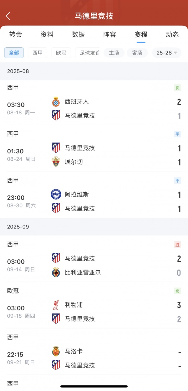 🥶小蜘蛛又一年无冠?马竞欧冠开门黑+西甲第11,开季5场仅1胜
