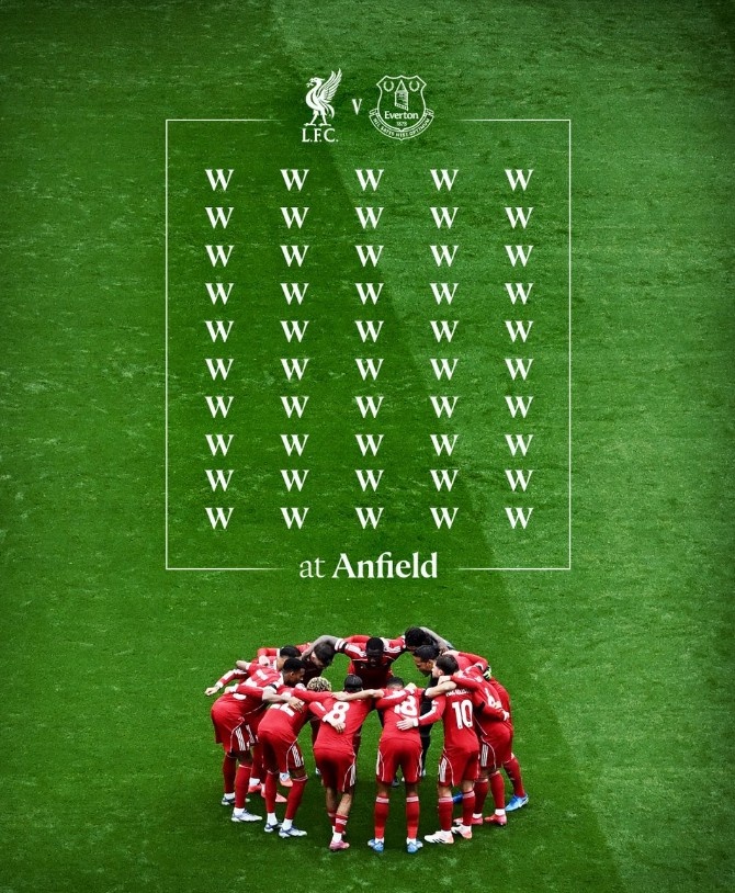在安菲尔德,利物浦有着非常强大的战斗力,本场比赛是利物浦面对埃弗顿在联赛中取得的第50场胜利。