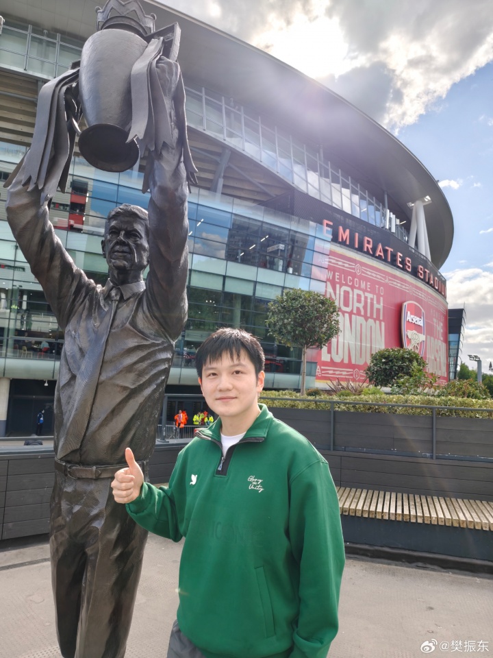09月22日讯 昨晚英超第5轮焦点战,阿森纳主场1-1战平曼城。目前在德国俱乐部萨尔布吕肯乒乓球队效力的樊振东现场观看了这场比赛,并在社媒中分享了观赛感受。