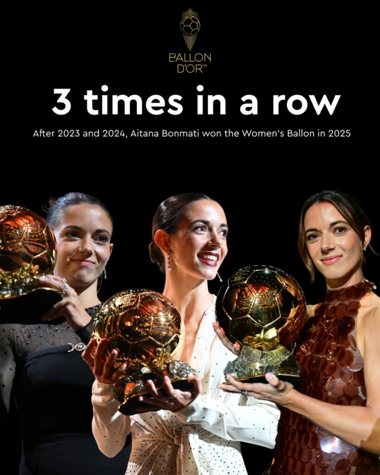 9月23日讯 巴萨女足球员邦马蒂获得2025年女子金球奖,这是她连续三年获奖。邦马蒂在采访时称自己没想到能够获奖。在上赛季的女足欧冠决赛中,巴萨女足0-1负于阿森纳女足,因此很多人预测阿森纳女足球员卡...