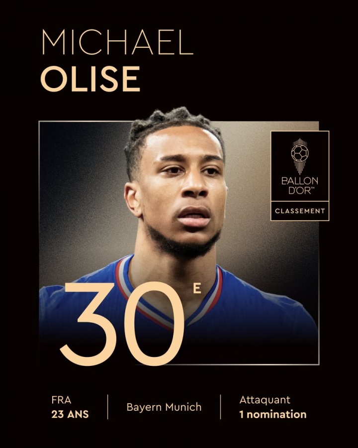 09月23日讯 今日金球奖颁奖典礼进行,拜仁前锋奥利塞首次进入候选,排在金球奖第30名。