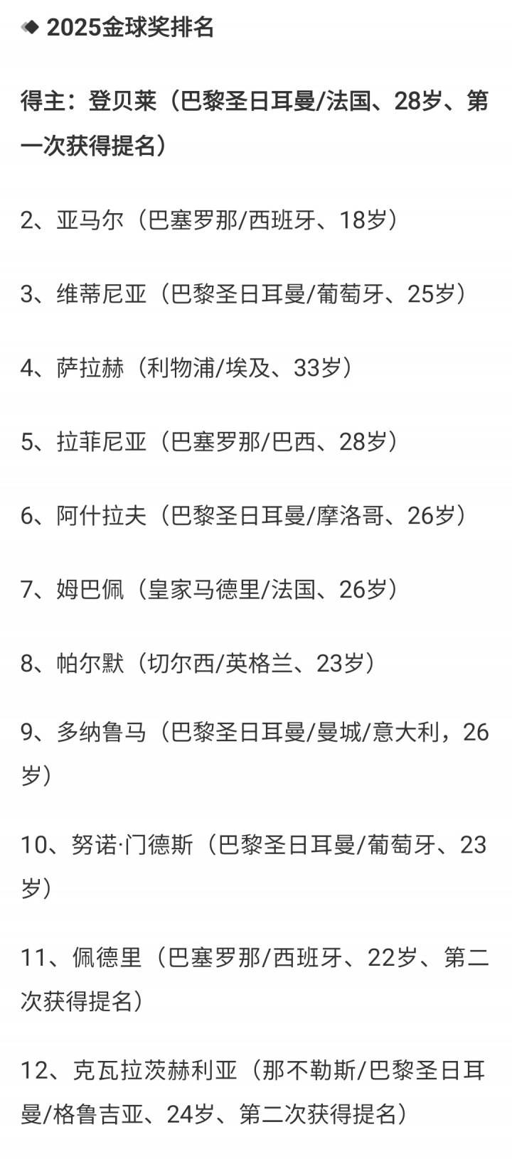 骆明表示:恭喜登贝莱获得金球奖。不过我的选票还不能公布,因为《法国足球》杂志今年特地要求,具体选票不能先于他们公布。我只能暗示一下,我的选票前五与最后前五(下图)人选一致,有三人顺序也一样,只有两个人顺序差了一位。您大概可以猜到我的选票了。
