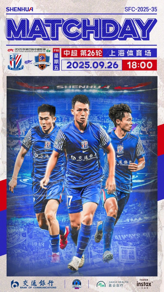 🏆 2025华润饮料中超联赛 第26轮🆚 上海申花 vs 梅州客家📅 9月26日 周五 18:00🏟 上海体育场📺 五星体育、咪咕视频 ...