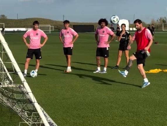 9月27日讯 迈阿密国际社媒晒出队内训练视频,梅西和德保罗进行另类射门PK。