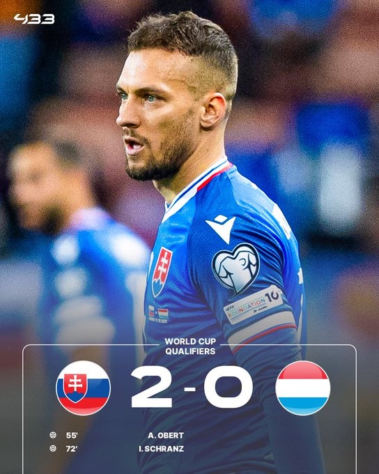 比赛第55分钟,奥伯特为斯洛伐克打破僵局,1-0领先。