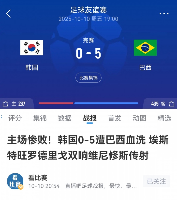 4天前刚刚5-0横扫韩国队,巴西队今天遭...