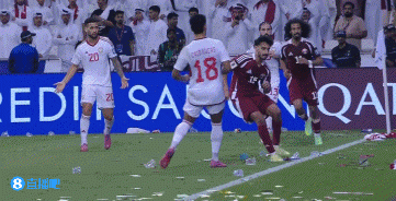 补时阶段,卡塔尔球员被撞后倒地,在地上连...