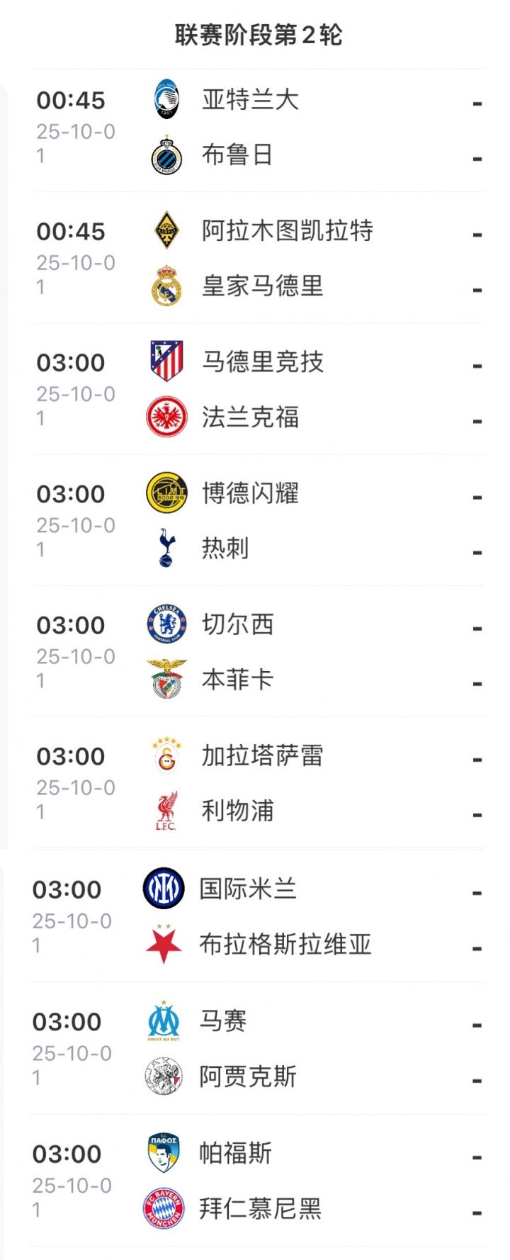 国庆假期即将来临,欧冠第二轮联赛阶段赛事也将打响,明日凌晨多支豪门集结出战!皇马远赴哈萨克斯坦,客战阿拉木图凯拉特,穆里尼奥率本菲卡重返斯坦福桥。利物浦、拜仁、国米、马竞、热刺等豪门也将出战。
